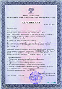 надзору (Ростехнадзор) на применение Шлангов гибких металлических